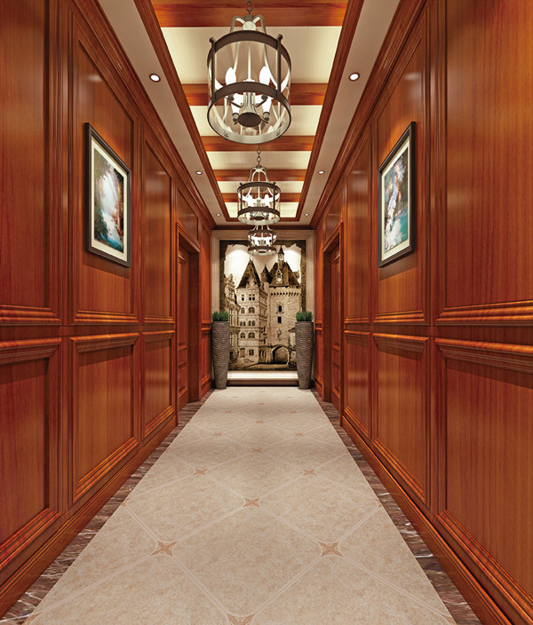 一般室內(nèi)過(guò)道的上方會(huì)有梁,所以我們一般都是選擇有吊頂?shù)奶幚矸绞?。吊頂宜?jiǎn)潔流程,圖案以能體現(xiàn)韻律和節(jié)奏的線性為主,橫向?yàn)榧?。吊頂要和燈光的設(shè)計(jì)協(xié)調(diào),頂面盡量用清淺的顏色,不要造成凌亂和壓抑之感。